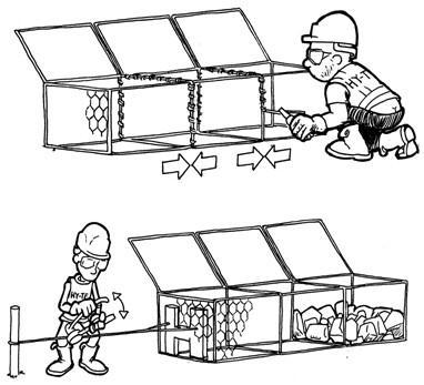 格賓石籠網被運到施工工地時,是若干個網箱被打成一大包。剪斷綁絲,取出所需的獨立的格賓石籠網箱,綁絲也會同時提供。