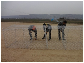 (1) 石籠網(wǎng)橋梁防護(hù)系統(tǒng)運(yùn)用雙絞合六邊形金屬網(wǎng)面對(duì)橋墩橋地上進(jìn)行防護(hù),這種包塑雙絞合六角形金屬網(wǎng)便是石籠網(wǎng)與被防護(hù)面緊緊聯(lián)絡(luò),有用的防止了滑坡。這歸功于石籠網(wǎng)網(wǎng)孔的有用阻撓。石籠網(wǎng)孔的大小與金屬絲的絲徑有很大聯(lián)絡(luò)。它們的完美聯(lián)絡(luò)大大增強(qiáng)了石籠網(wǎng)的運(yùn)用效果。