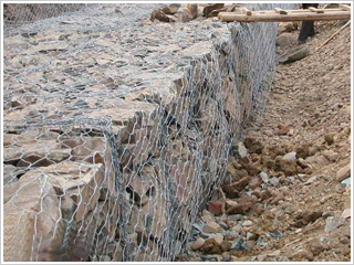使用鋅鋁合金鋼絲編織成的網(wǎng)狀矩型網(wǎng)箱,其使用壽命在70-80年左右是普通鍍鋅層鋼絲的3倍。