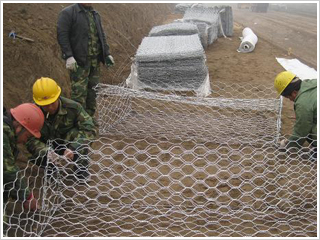 格賓網(wǎng)也叫石籠網(wǎng)是由金屬線材編織的角形網(wǎng)(六角網(wǎng))制成的網(wǎng)箱。石籠網(wǎng)由高抗腐蝕、高強(qiáng)度、具有延展性的低碳鋼絲或者包覆PVC的以上鋼絲使用機(jī)械編織而成,使用該網(wǎng)制作而成的箱型結(jié)構(gòu)就是石籠。