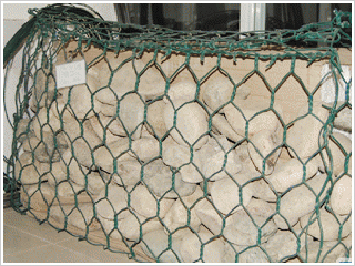 根據(jù)ASTM和EN標(biāo)準(zhǔn),所使用的低碳鋼絲直徑根據(jù)工程設(shè)計(jì)要求而不同。一般介于2.0-4.0mm之間,鋼絲的抗拉強(qiáng)度不少于38kg/m2,金屬鍍層重量高可以達(dá)到300g/m2。可以在外面包上一層塑料膜做保護(hù),再編織成各種規(guī)格的六角網(wǎng)。這層PVC保護(hù)層將會(huì)大大增加在高度污染環(huán)境中的保護(hù),并且通過(guò)不同顏色的選擇,使其能和周?chē)淖匀画h(huán)境相融合。